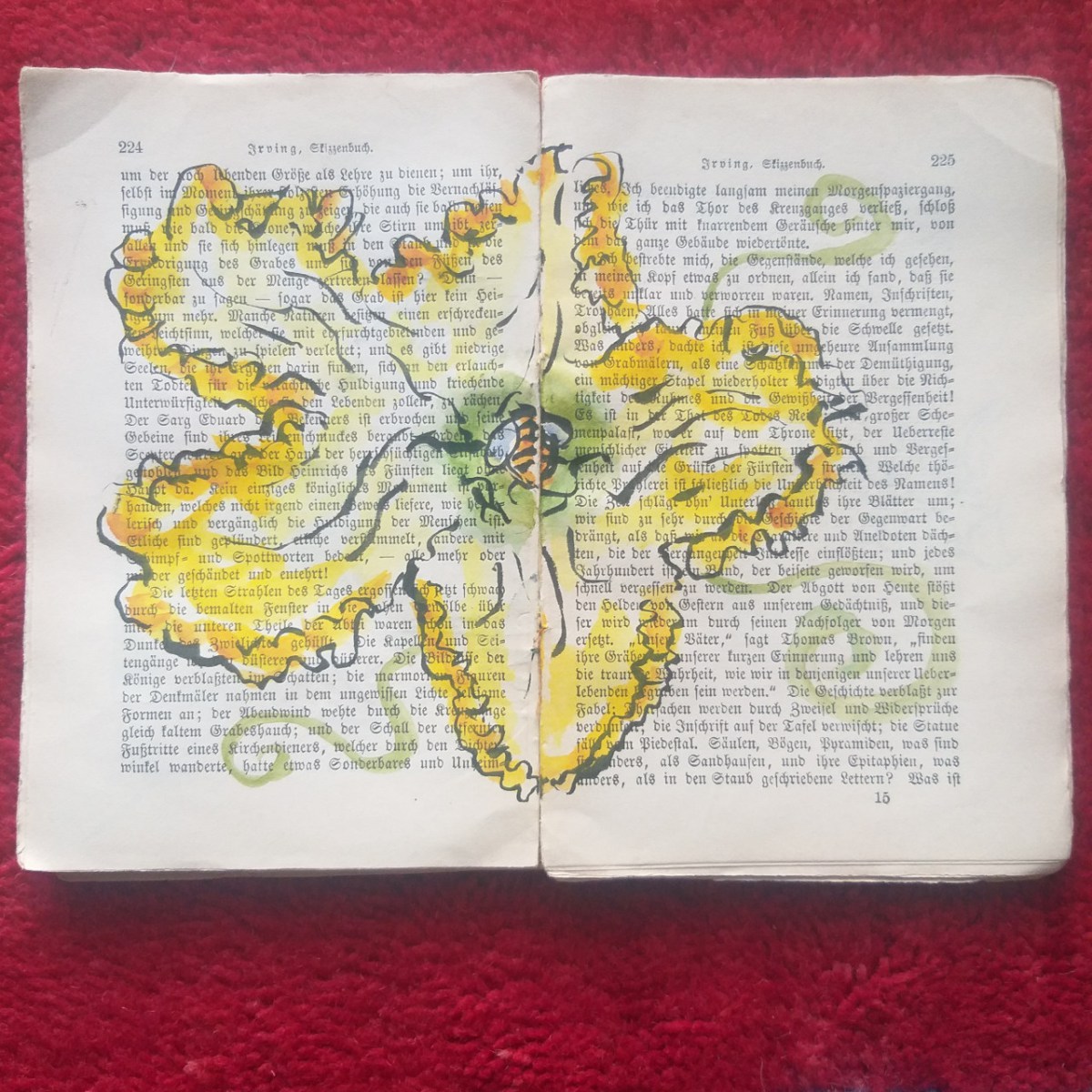 Das wunderbare alte Papier, die schöne Schrift, die leichten und zugleich sehr unterhaltsamen Worte und das kleine transportable Format luden direkt ein, eine weitere Ebene Skizzen über die Blätter zu bringen.